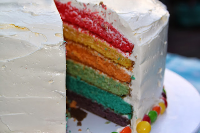 Celebrating Colin’s family birthday party we had to have some cake, didn’t have to be perfect but I wanted it to be special so I made a rainbow layer cake.